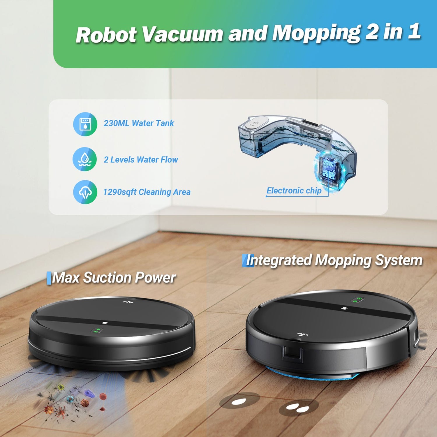 You can schedule Rhoda to clean the house at certain hours, so you don’t even have to think about cleaning your floors